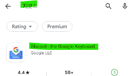 한글로 표시되고 있지만 아직 한글 입력이 되지 않으면 구글 플레이 에서 지보드로 검색해서 설치하면 된다.